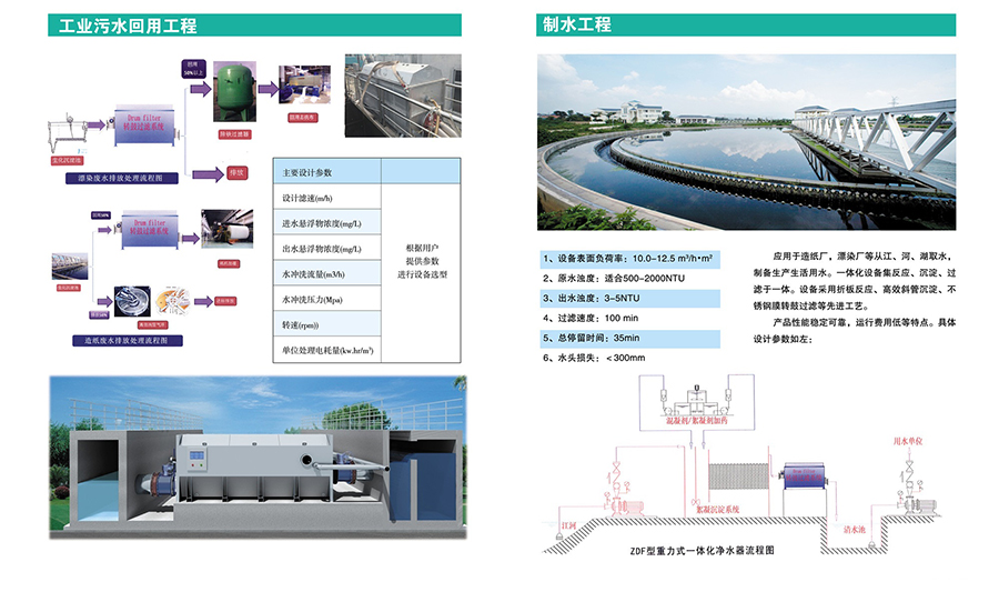 設(shè)備為連續(xù)過(guò)濾,當(dāng)滾筒內(nèi)有水進(jìn)入時(shí),自控系統(tǒng)將啟動(dòng)驅(qū)動(dòng)系統(tǒng)驅(qū)動(dòng)滾筒轉(zhuǎn)動(dòng),同時(shí)啟動(dòng)反沖洗泵。滾筒開(kāi)始緩慢轉(zhuǎn)動(dòng),反沖洗泵抽取濾后出水對(duì)濾網(wǎng)進(jìn)行反沖洗。沖洗下來(lái)的顆粒物質(zhì)由設(shè)備內(nèi)部的反沖洗水收集槽收集,并通過(guò)排污管排出設(shè)備。反沖洗的同時(shí),過(guò)濾正常運(yùn)行。當(dāng)無(wú)水通過(guò)設(shè)備時(shí),設(shè)備將自動(dòng)停止。