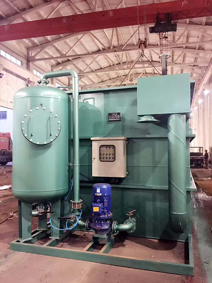 整個裝置由污水泵、計量裝置、加藥箱、反應槽、氣浮槽、氣浮系統(tǒng)、砂濾器、活性碳吸附柱及電控系統(tǒng)組成,10t/h以下組合于同一基座,10t/h以上為方便運輸由散件到現(xiàn)場組裝成整體,可根據(jù)用戶要求(非標)設計。當整個裝置調(diào)整至正常工作后,基本可處于自動運行狀態(tài),操作方便。